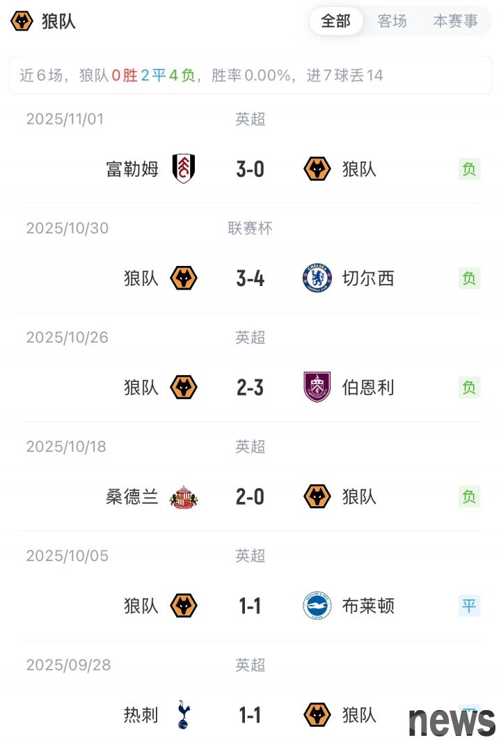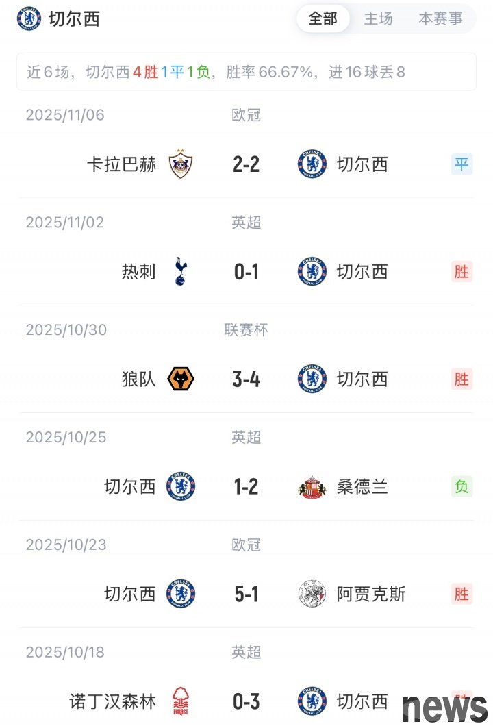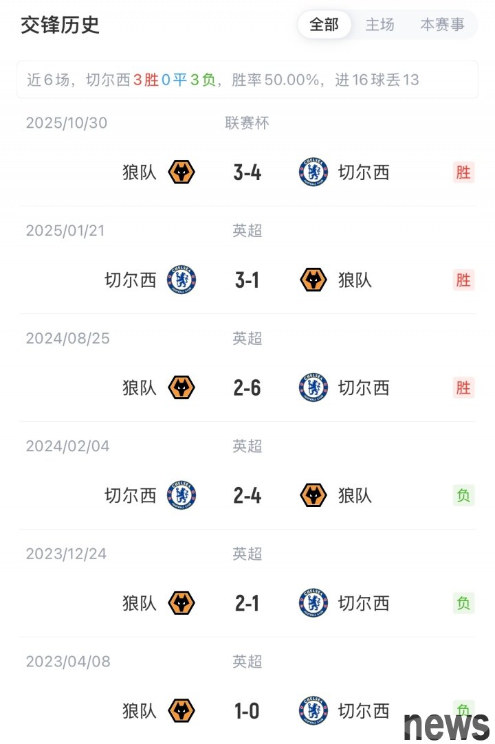 Chelsea currently has 5 wins, 2 draws and 3 losses, and is temporarily ranked eighth with 17 points. The Wolves have 0 wins, 2 draws and 8 losses, ranking bottom with 2 points.