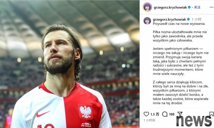 The 35-year-old Polish midfielder Krychowiak posted a message on social media today, officially announcing his retirement.
